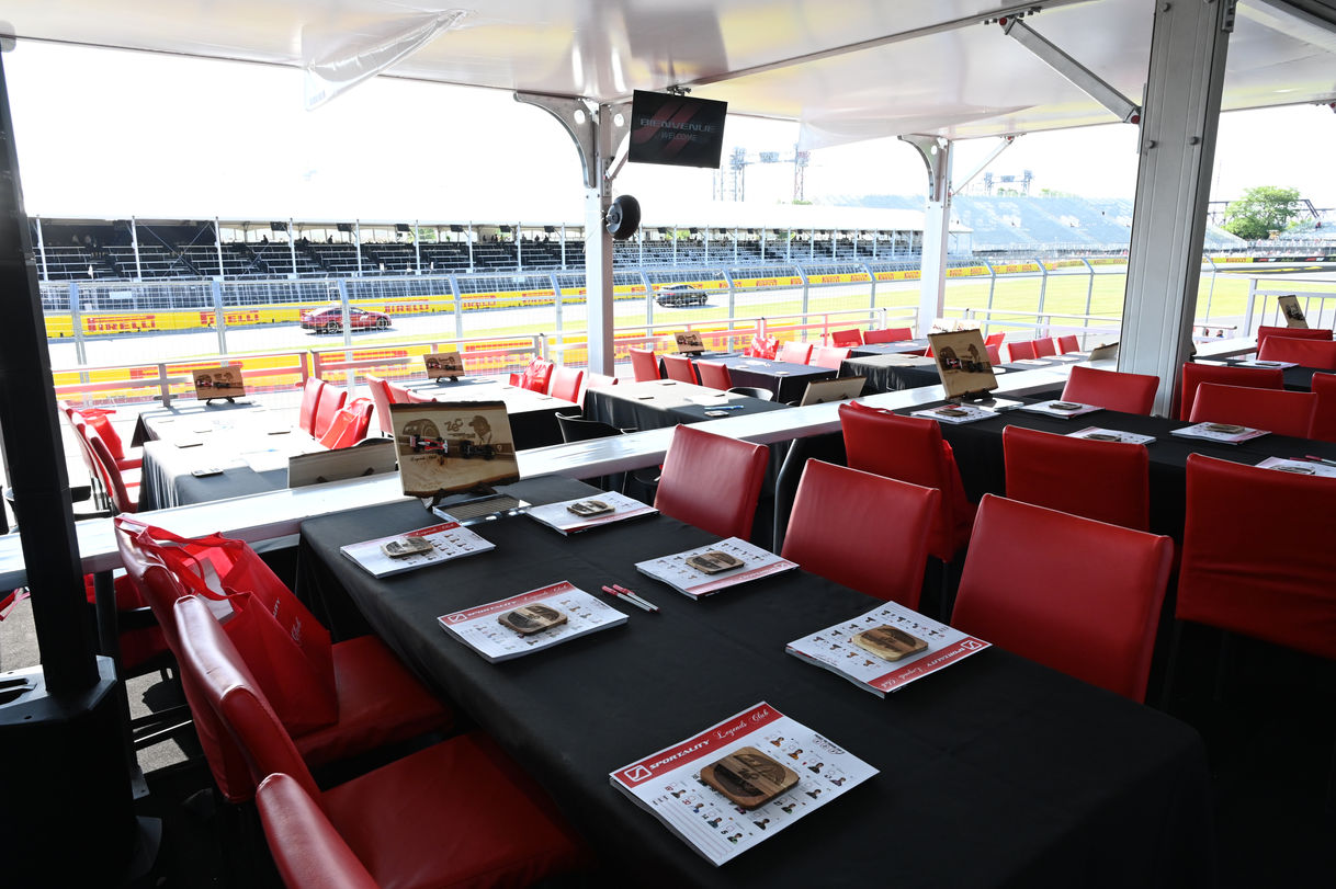 The Legends Club is located in the Podium Suite on the inner perimeter of the track just a few meters beyond the start / finish line, in the hard braking area before the left-right-left chain of the Senna turn. The club has a clear view of the podium where race winners from each scheduled event open their celebratory magnum of champagne. This exclusive suite offers a unique setting for corporate leaders to develop and consolidate business relationships.